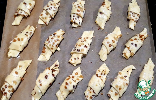 Рогалики разложила на противень, застеленный