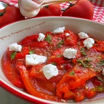 Хочу познакомить вас с одной болгарской закуской из перцев и помидор. Пикантная и пряная, она очень вкусна со свежей лепешкой и красным вином. Замечательно подходит к мясным блюдам.