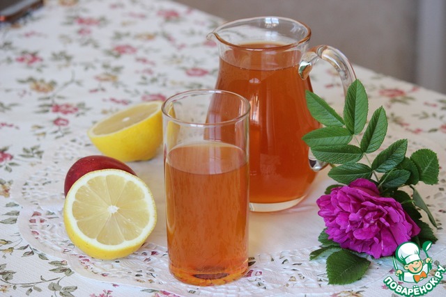 Я брала полтора литра кипятка, 15 чайных ложек сахара, полтора нектарина и половину лимона. Для меня мало кислятины, в другой раз добавлю целый лимон.