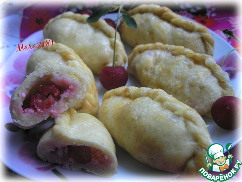 Вишню для вареничков не покупала, собирала в чужом дворе, когда с детками гуляли, только на одном дереве более-менее есть вишенки, а в основном, очень мало.