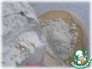 200 мл топлёного молока смешать с 1 яйцом, 1 ст. л. сахара, 1/4 ч. л. соли, 2 ст. л. растительного масла и 250 г просеянной муки. Замесить тесто.