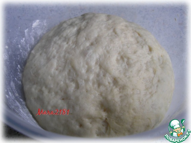 Рабочую поверхность присыпать мукой, разделить тесто на равные кусоки. Каждый кусочек обвалять в муке и раскатать его в круг диаметром около 11 см.
