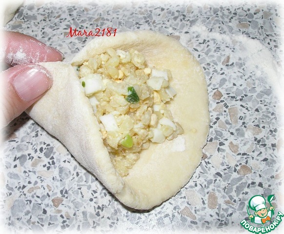 Толщина теста около 7-10 мм. В середину кладу 1 ст. л. начинки.