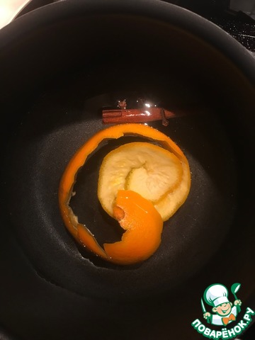 Когда влага вся испарилась, достаем кожуру апельсина, корицу и гвоздику.