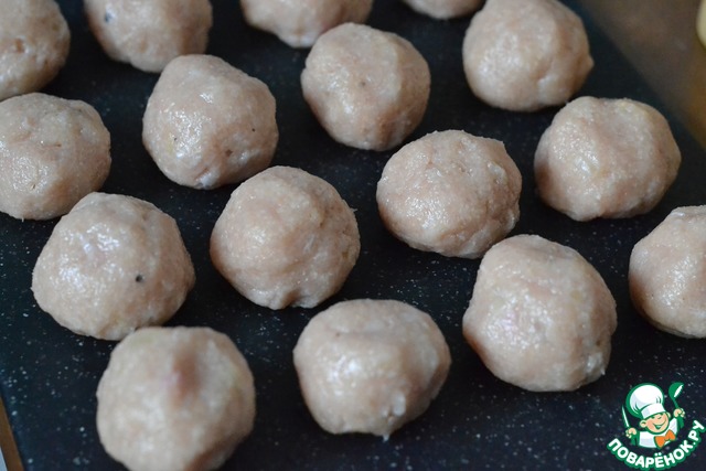 Готовые фрикадельки выложить в миску или кастрюльку для запекания