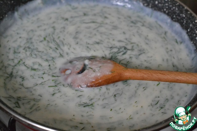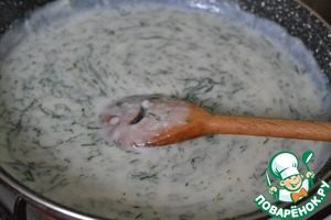 Добавить укроп, щепотку сахара и сливки. Еще раз довести до кипения. Снять с огня.