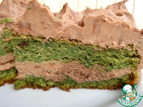Торт летний, поэтому яркий, сочный, красочный, как само лето. В нем гармонично сочетаются мягчайшие ароматные зеленые бисквитные коржи и в меру сладкий заварной шоколадный крем на основе йогурта. Бисквитные коржи с добавлением пюре шпината, насыщенного зеленого цвета и ванильно – цитрусовым ароматом, который чудесно маскирует травянистые оттенки.
