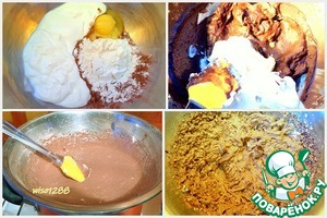 Приготовить крем: соединить йогурт, сахар, ванилин, муку, какао порошок, яйцо. Все ингредиенты перемешать и поставить на водяную баню. Постоянно помешивая нагревать до загустения. Крем остудить до комнатной температуры и ввести сливочное масло. Взбить до гладкого, однородного, воздушного состояния.