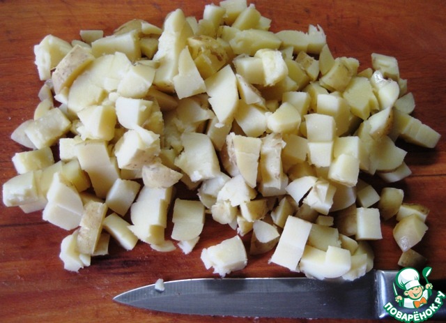Картофель отварить, нарезать кубиками.