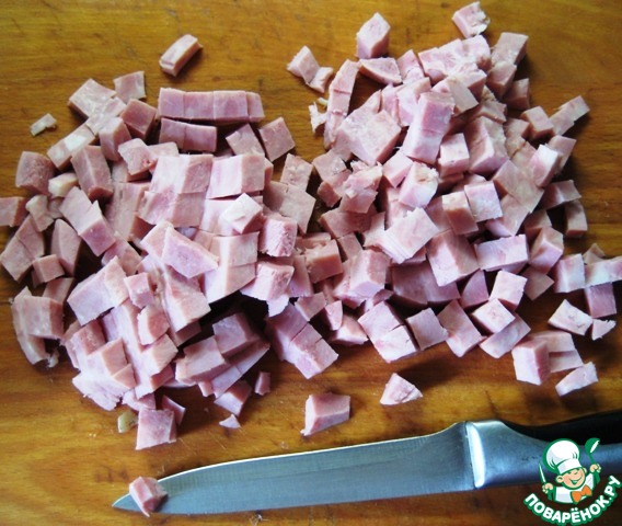 Также нарезать ветчину.