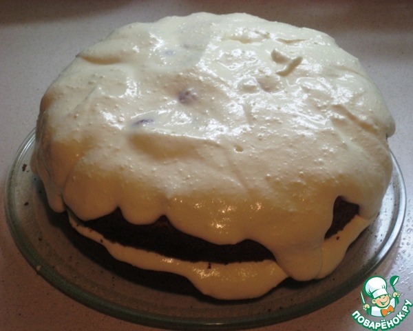 Слой творожного крема (оставляем 2-3 ст. л. крема для боков торта).