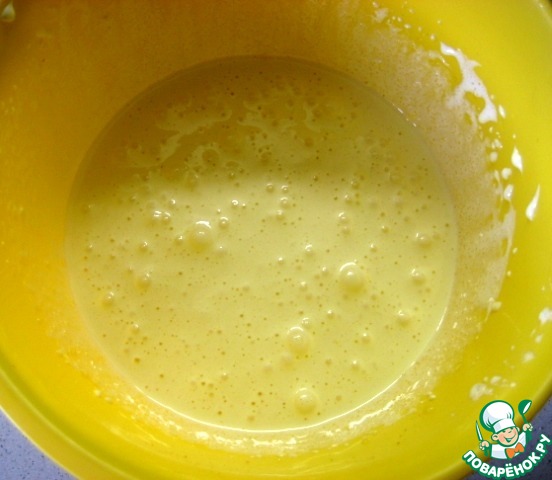 К желткам добавляем оставшийся сахар и мед. И взбиваем пока она не станет светлой и однородной.