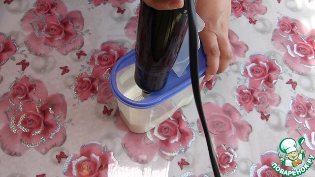 Взбиваем миксером (блендером) на небольшой скорости в течении 1 минуты. -
