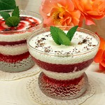 В стаканы или другую посуду для десертов вылить часть белого желе, поставить в морозилку на 15 минут, затем аккуратно разлить клубничное желе, снова убрать в морозилку на 15 минут.