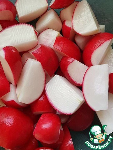 Шашлычный сезон в самом разгаре. Нет ничего приятнее, чем на выходных в кругу друзей или близких пожарить на углях мясо или грильные сосиски. Предлагаю вам лёгкий овощной салат- закуску из помидоров и редиса, который прекрасно подойдёт для мясных блюд. К тому же готовить его совсем не долго и просто! Время приготовления указано без учёта маринования салата в холодильнике.