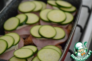 Выложить сверху на сыр по 2-3 кружочка цуккини. -