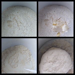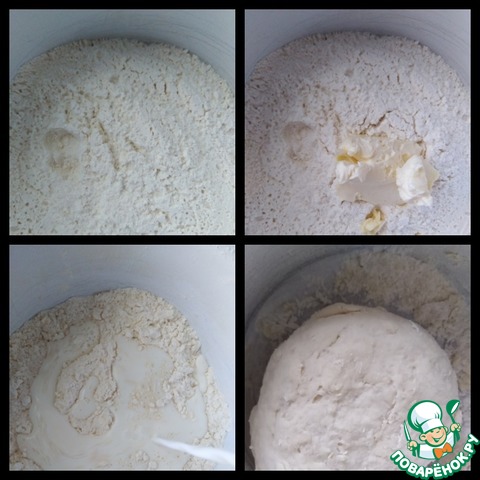 В 300 г муки добавить соль 0,5 ч. л., положить 50 г масла мягкого и перемешать в крошку, добавить молоко и замесить тесто.