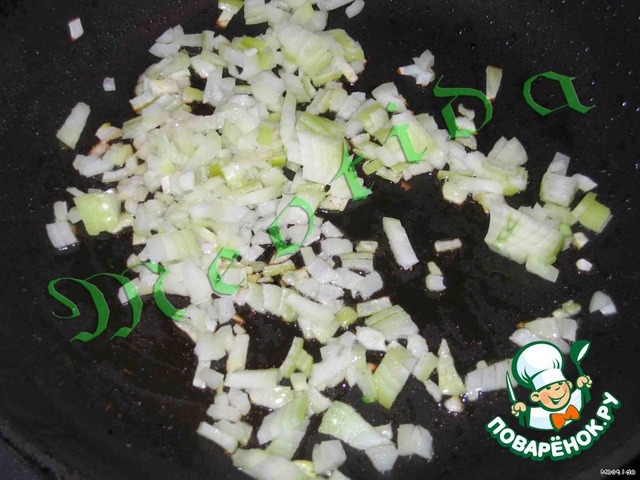 обжариваем измельченный лучок до золотистого цвета в 2 стол.л. растительного масла