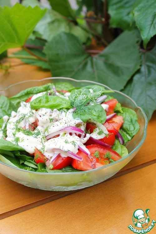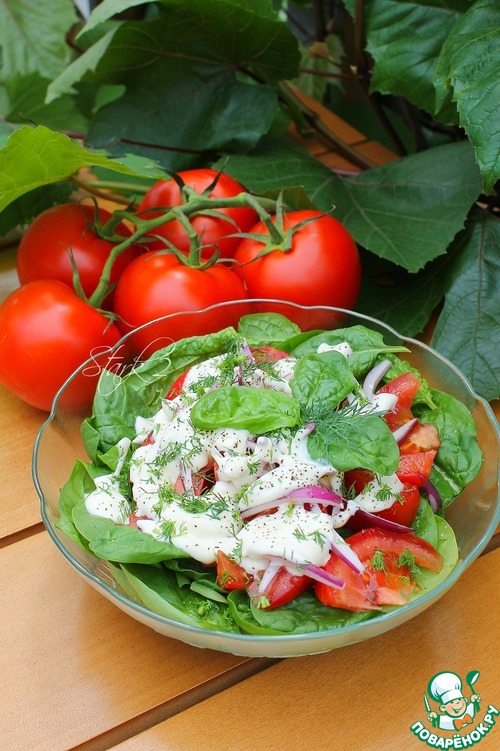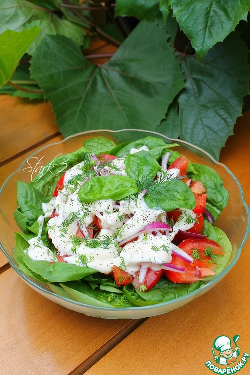 Рецепт «Салат из шпината и помидоров»: