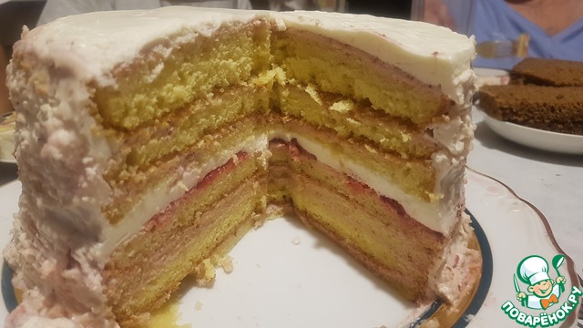 В отношении приготовления - натворила кремов и, как мне показалось, что их было многовато, особенно того, который с клубникой: и стекает-то он, и куда его столько? Но потом поняла, что всего было заложено в рецептуре, как надо и выкладывать кремы надо было все (остатки мы потом слопали с удовольствием