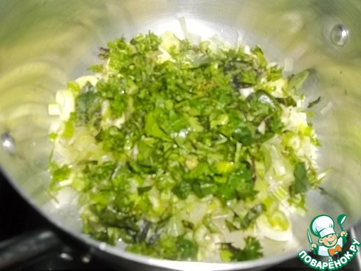 - Зелень (мелко нарубленная по вкусу) — 1/2 пуч.
