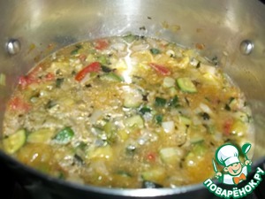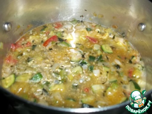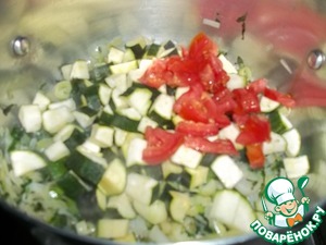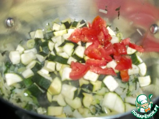 Добавить цуккини, помидор, чеснок.