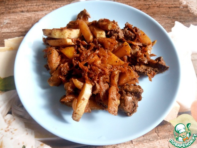 Куриная печень с овощами готова