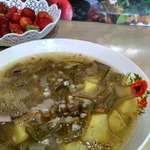 Я часто варю супы из морской капусты. Практически всегда использую капусту в консервах типа "Салат дальневосточный". Сегодня я приготовила суп из капусты готовой к употреблению в пакетах, положенной в подложку пластами небольшими. У меня капуста была в оливковом масле. Супы эти чаще готовлю с гречкой. Получается низкокалорийный, полезный и очень вкусный супчик. Полезен тем, кто сидит на диете или есть минимум жирной пищи, тем, кто следит за своим весом.