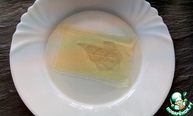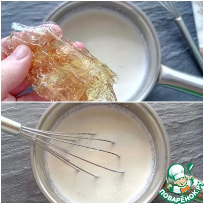 Если у вас листовой желатин, то его нужно залить ледяной водой. -