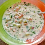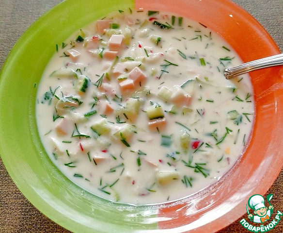 Рецепт «Окрошка на кефире и минеральной воде»: