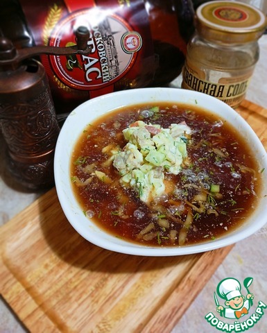 - Квас (Количество зависит от предпочитаемой густоты) — 1 л