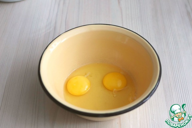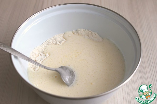 Соединить смесь сухих ингредиентов и яично - сахарную смесь.