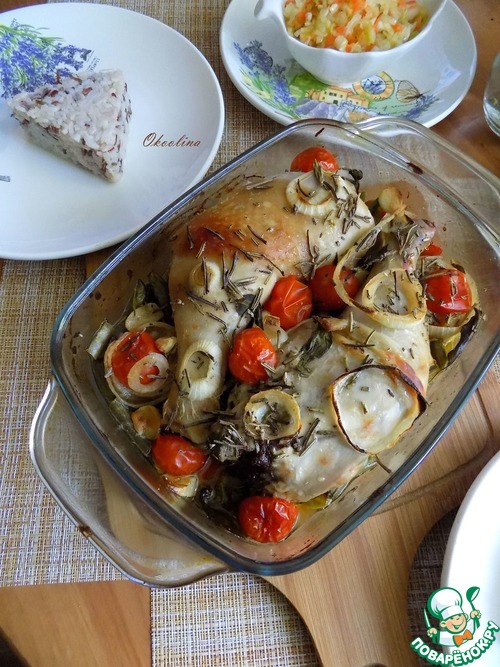 Куриные ножки, замаринованные в горчично-соевом маринаде и запечённые с овощами ассорти, базиликом и розмарином.