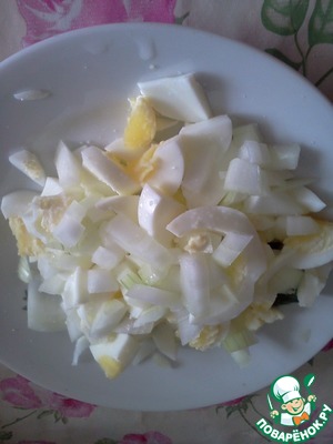 Смешиваем яйцо и лук, солим по вкусу.