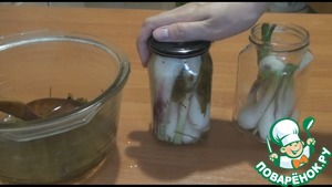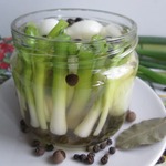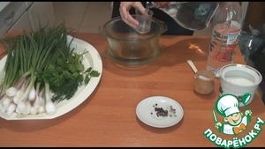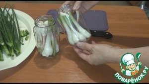 - Лук зеленый (Указано количество на 2 банки по 450 мл.Головки молодого лука, может понадобится больше или меньше) — 25 пуч.