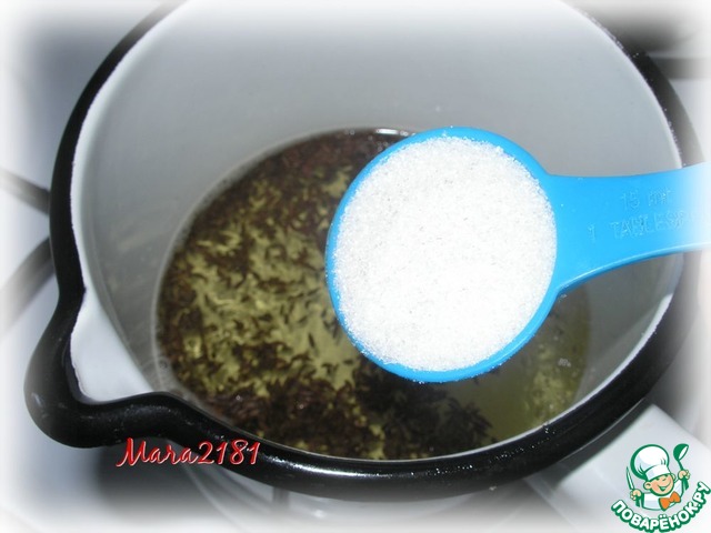 К тмину добавить 1 ст. л. сахара, размешать до растворения сахара и снять с огня. Дать остыть, процедить и убрать для охлаждения в холодильник.