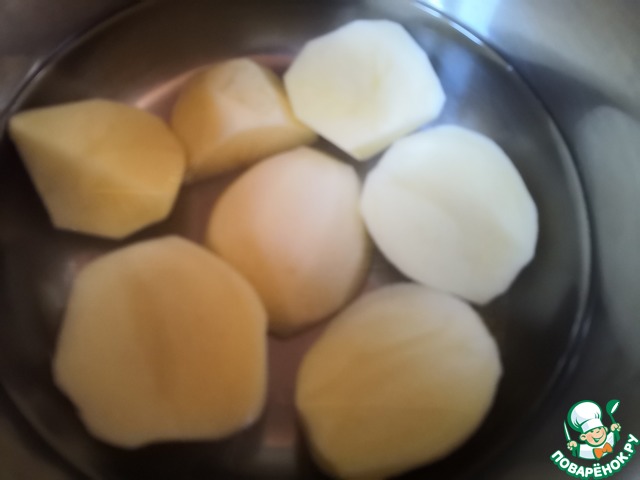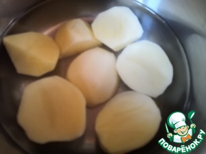 Картофель почистить, нарезать кусками и отварить до готовности.