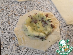 На центр выложить картофельную начинку. Сформироварть из нее что-то вроде корзинки.
