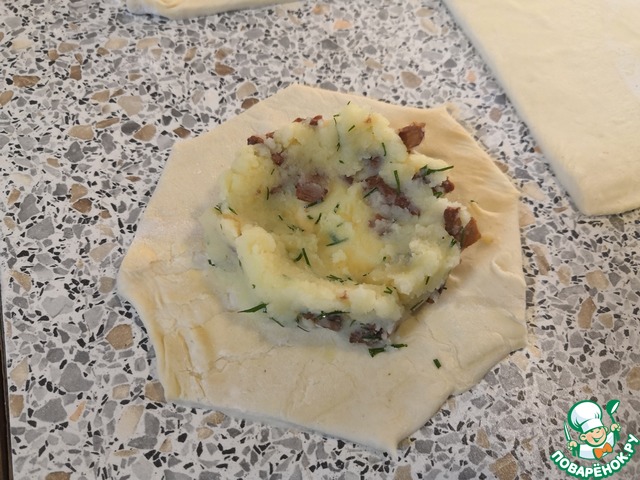 - Тесто слоеное бездрожжевое (1 лист) — 250 г