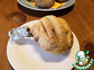 Торчащую косточку желательно закрыть фольгой, чтобы не обгорела.