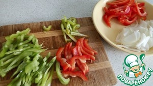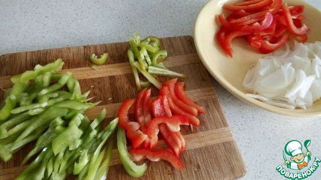 Перец красный и зеленый, но можно взять по половине перцев разных цветов (красный, зеленый, желтый и оранжевый)