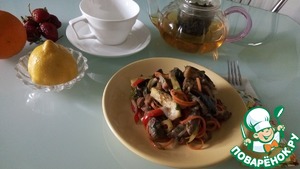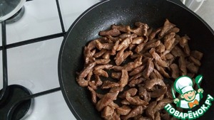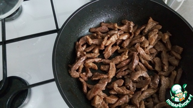 Так как мясо мариновалось добавлять подсолнечного масла не нужно, накрываем крышкой и обжариваем до готовности