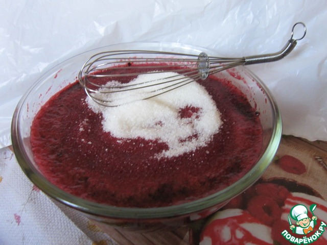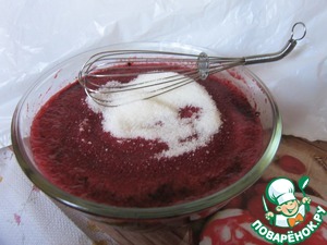 3. В ягодное пюре добавить сахар-песок и оставить на 20 минут, чтобы сахар растворился. Периодически помешивать. Обязательно попробовать: возможно, придется добавить одну-две ложки сахара. Пюре должно быть не сладким, а кисло-сладким.
