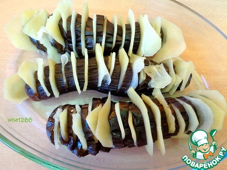 В каждый разрез баклажана вставить картофельный слайс.