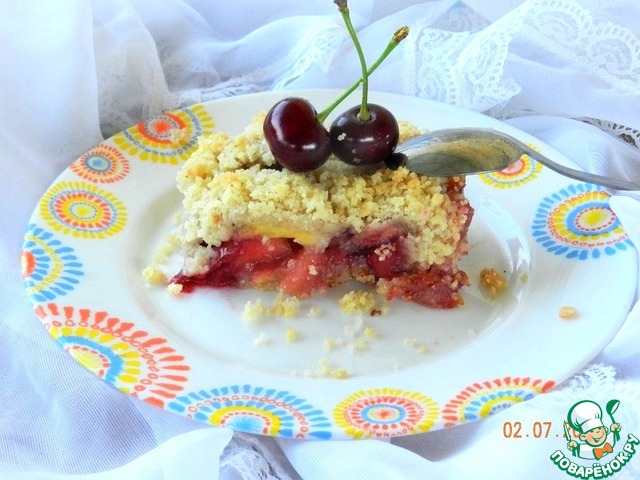 Рецепт «Яблочно-банановый крамбл с вишней»: