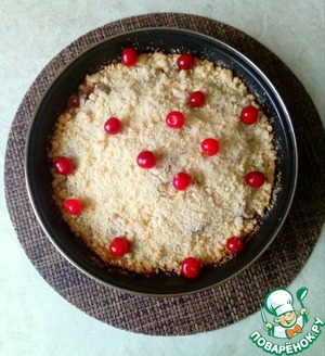 Засыпаем оставшуюся часть песочной крошки. Ставим в разогретую до 200 градусов духовку на 30 минут.