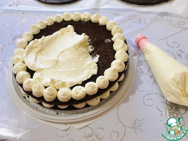 Покрываем кремом полностью. Не волнуйтесь что крем будет жирным и сытным. НЕТ! Этот крем достоин всяких похвал! Его много не бывает)))