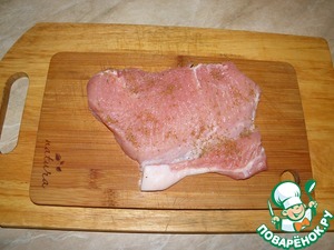 Мясо нарезать поперек волокон, слегка отбить, посолить, поперчить