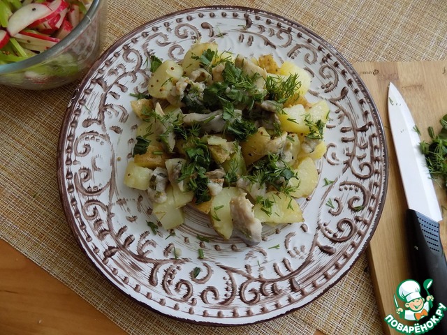 Салат с маринованной сельдью, молодым картофелем, редисом и зеленью. Любителям селёдки!