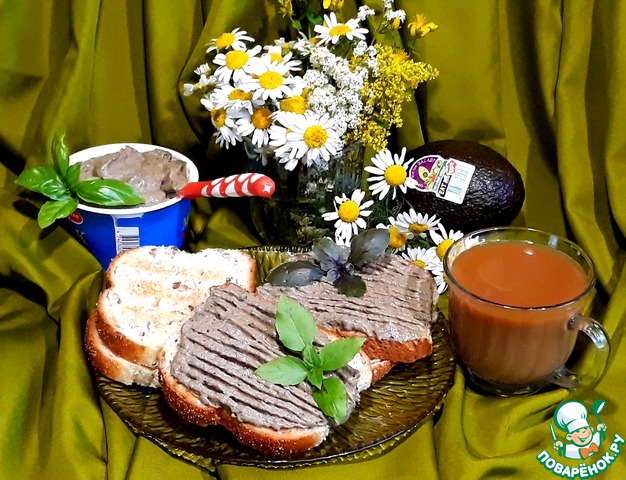 Намазка из моих любимых чёрных оливок и авокадо. Добавила мягкий сыр. Его я использую для бутербродов вместо сливочного масла. Кому-то покажется вкус этой намазки странным, поэтому я назвала её любительской. Для большего аромата на бутерброды я положила листочки базилика. Его можно измельчить вместе со всеми ингредиентами.